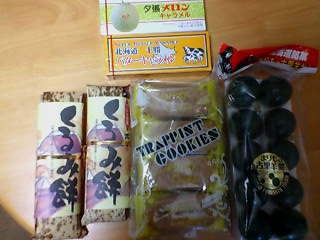 くるみ餅、トラピストクッキー、メロン&バターキャラメル、まりも羊羹